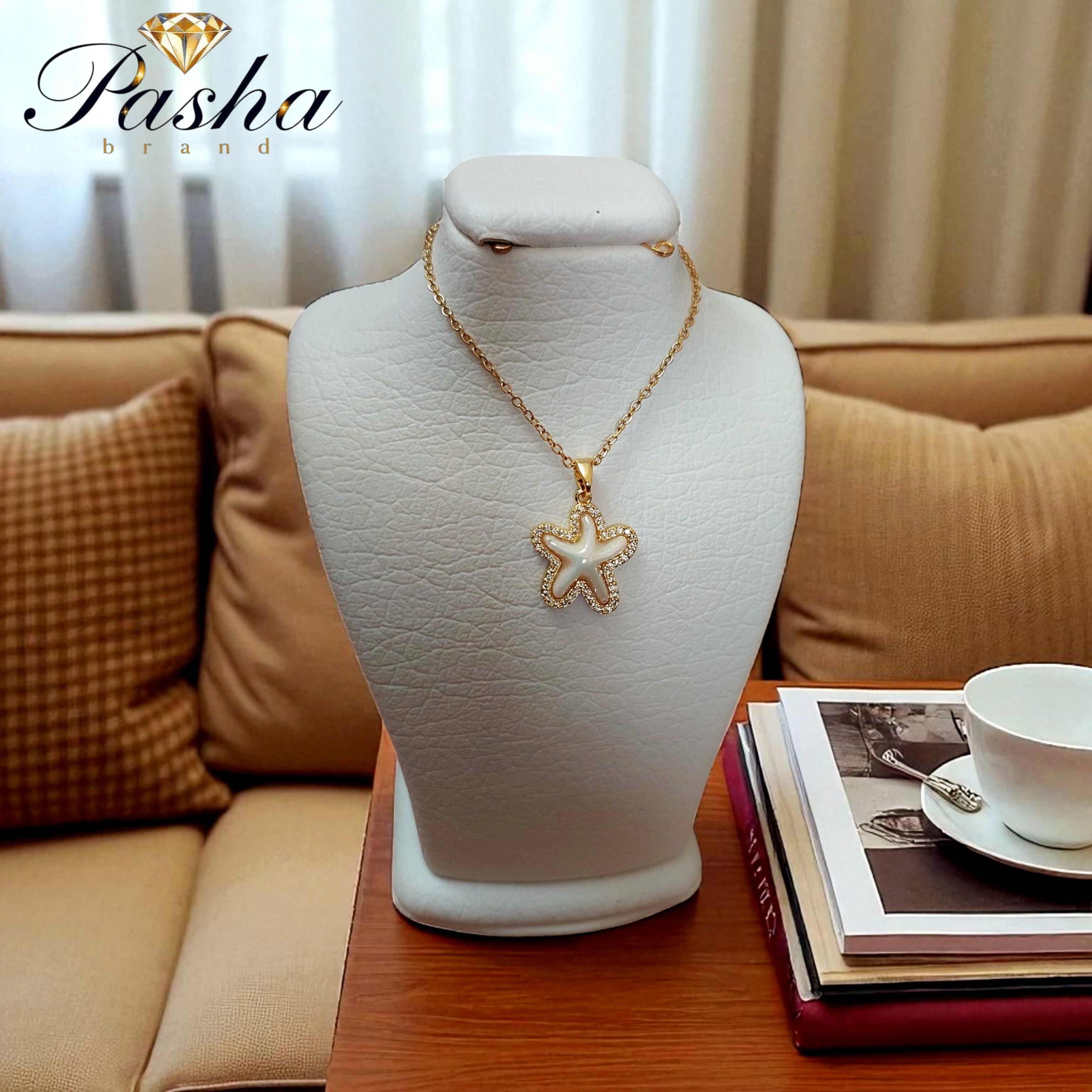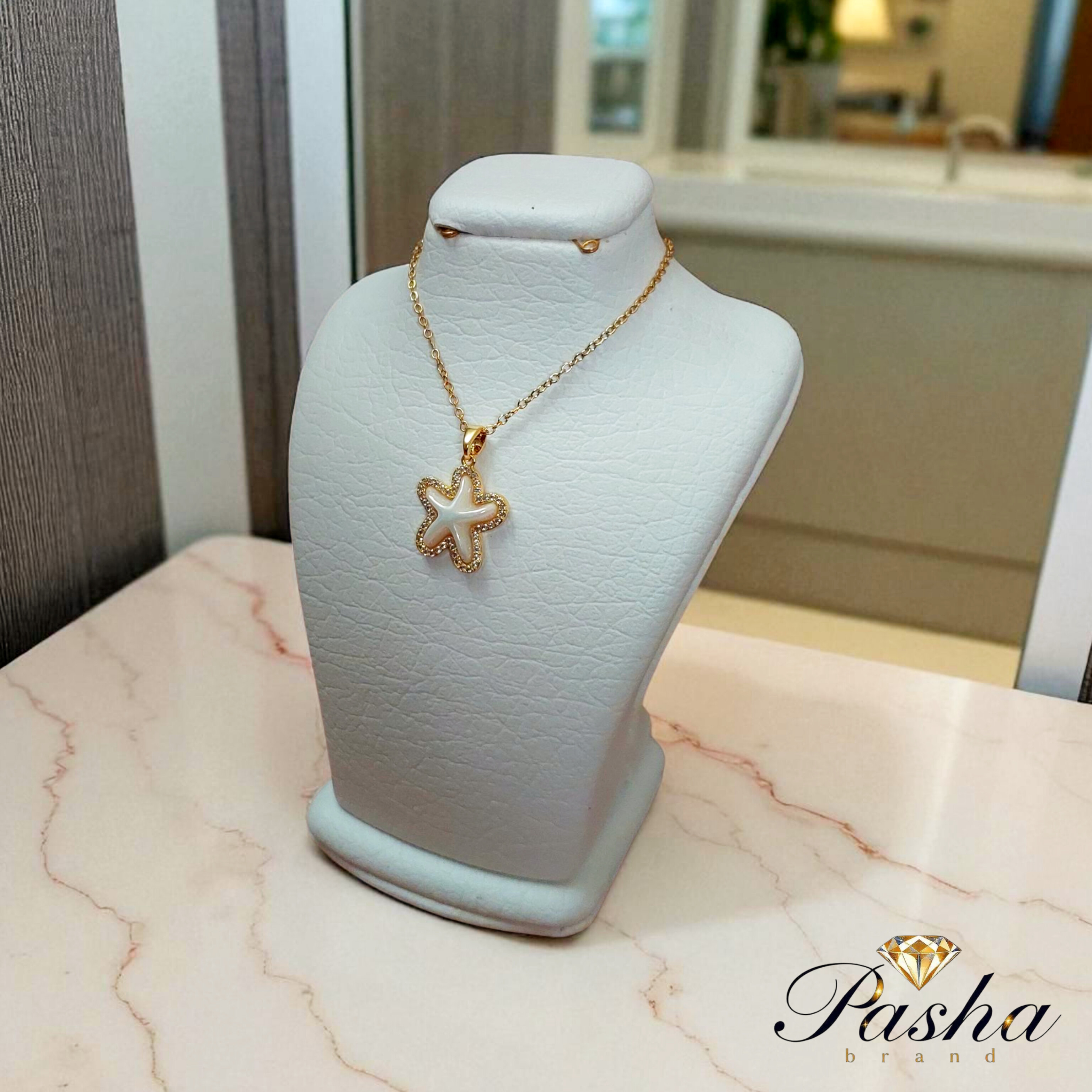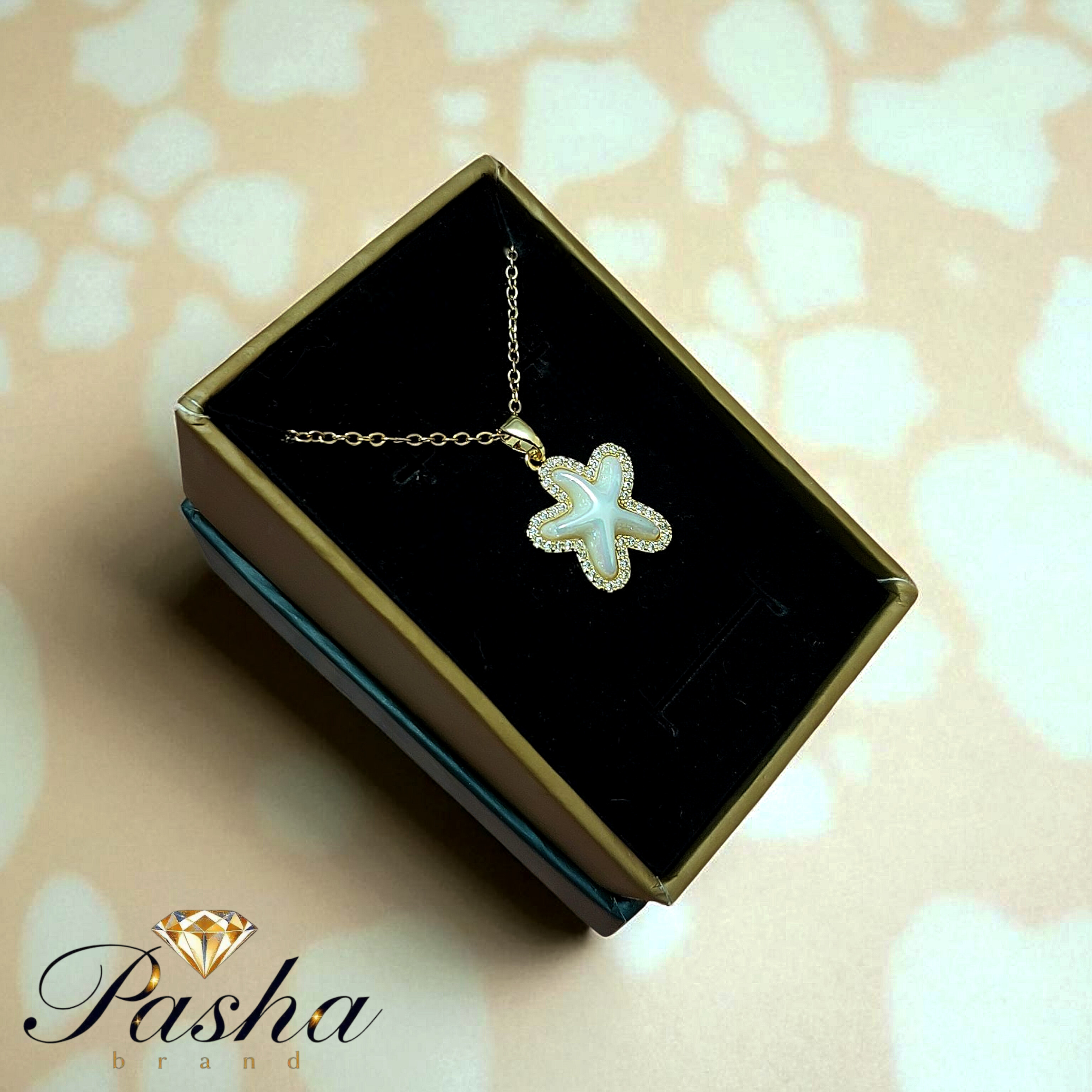 گردنبند زنانه طرح ستاره دریایی نگینکاری شده