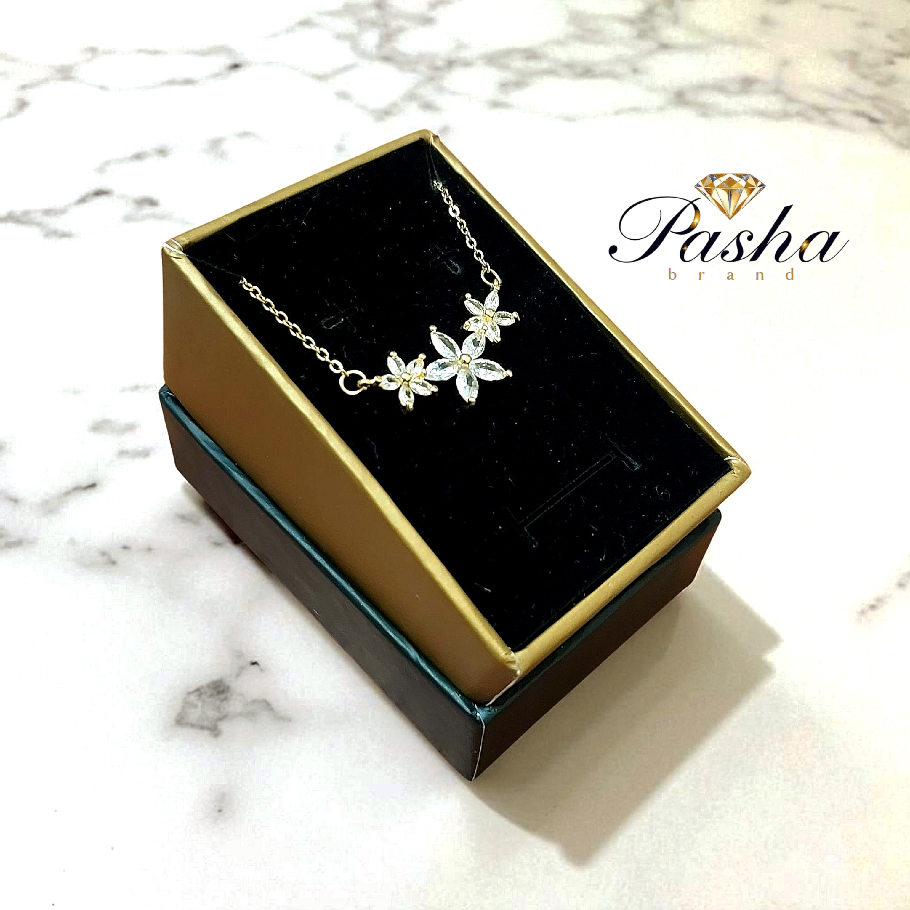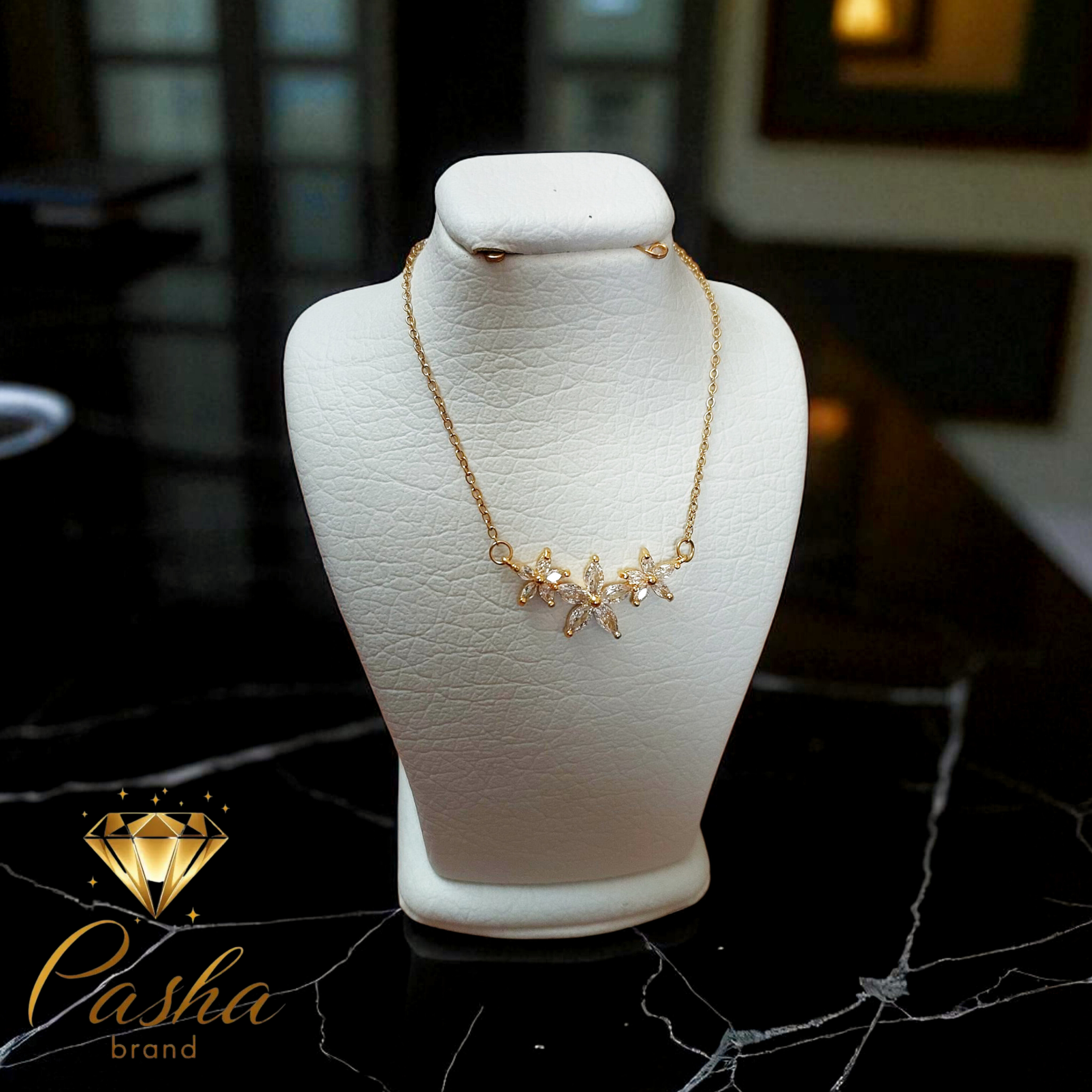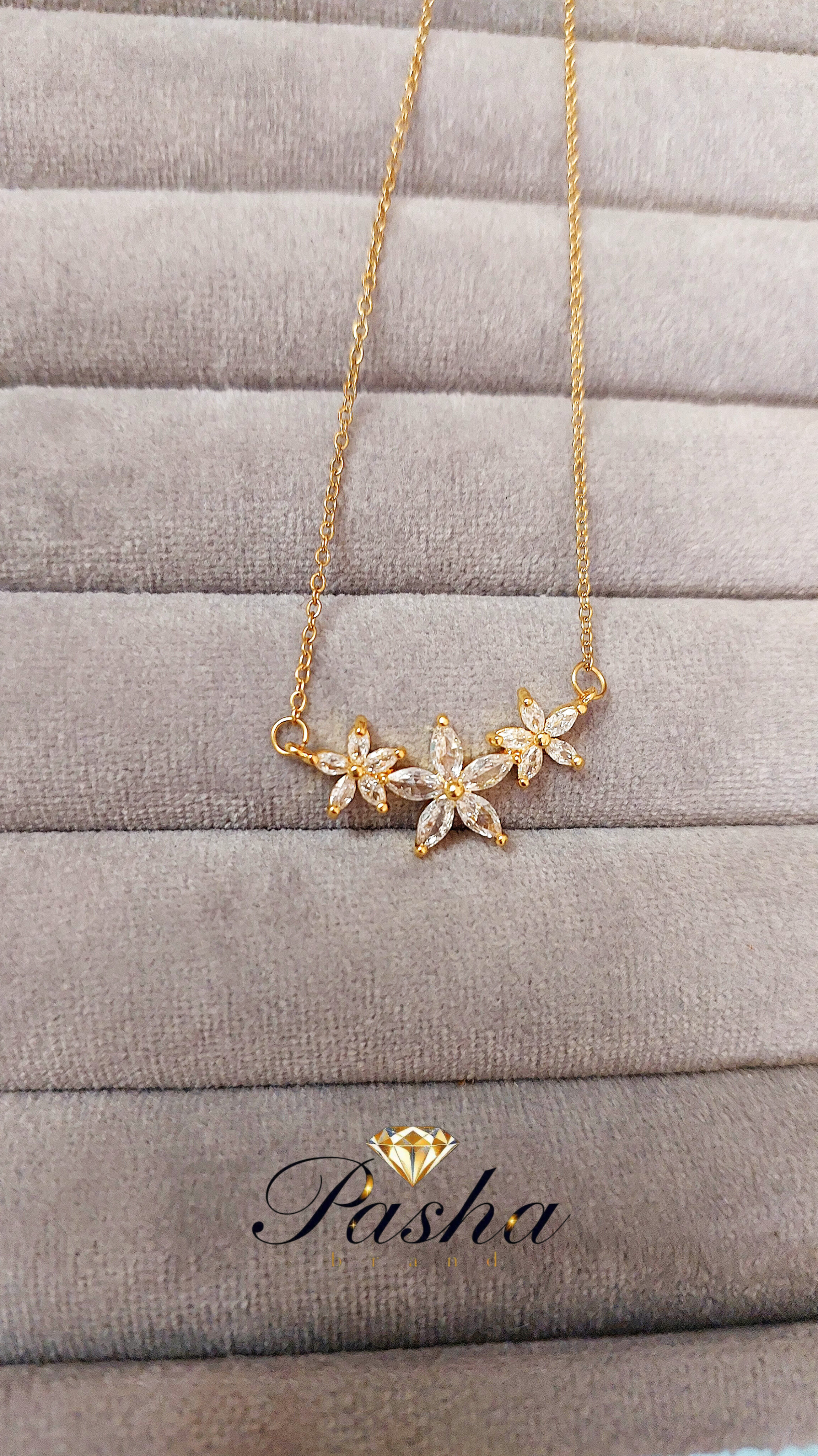 گردنبند زنانه طرح گلهای جواهری نگینکاریشده