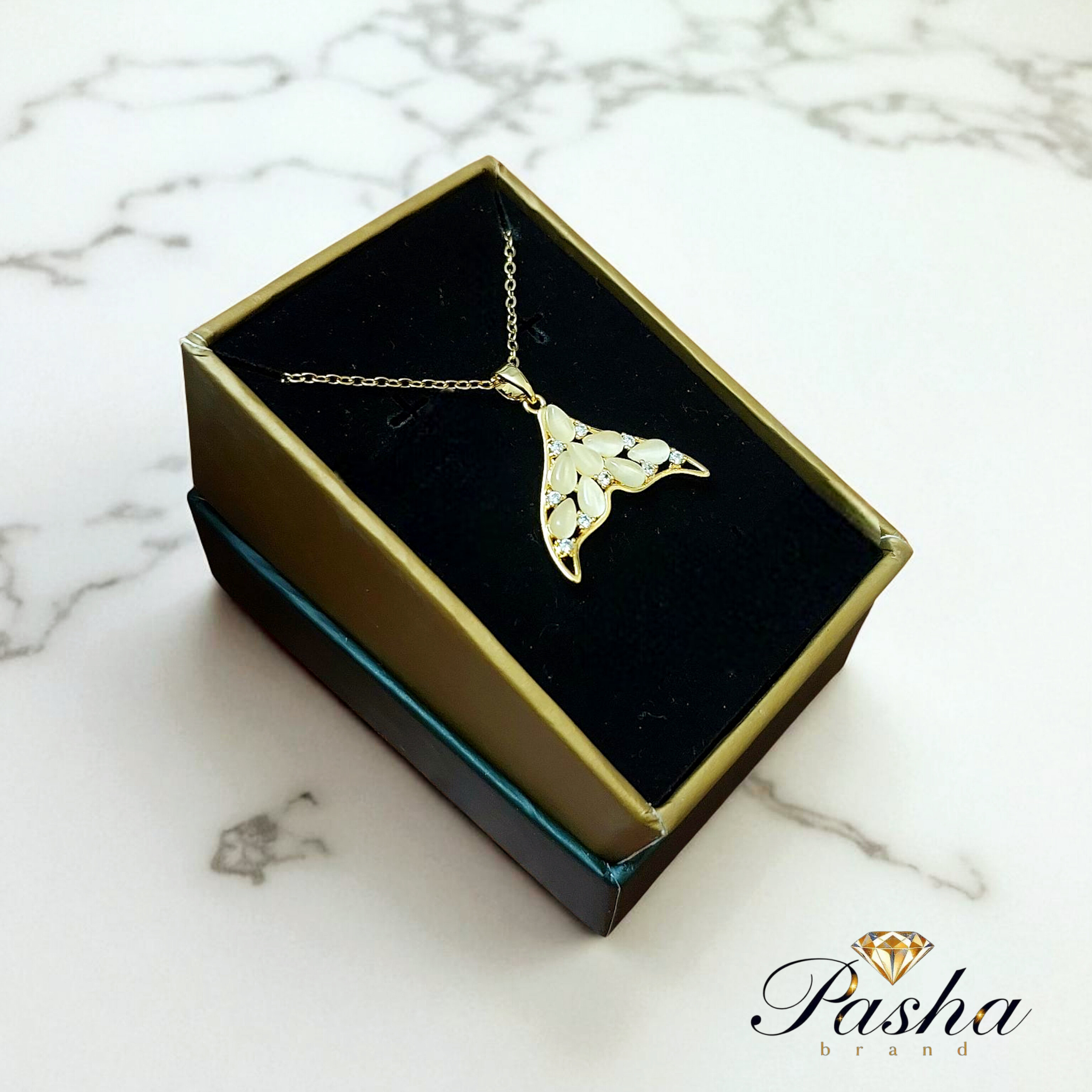 گردنبند دم وال نگین کاری شده زنانه استیل