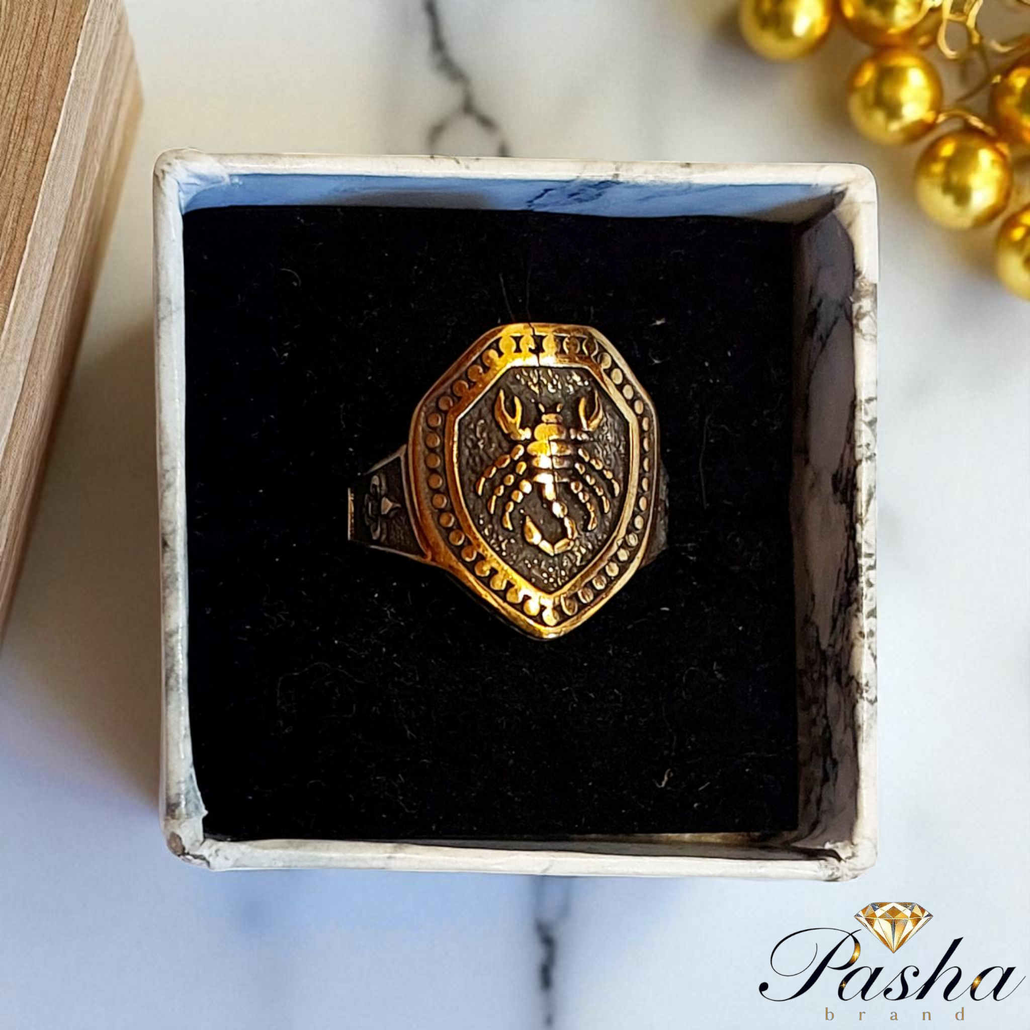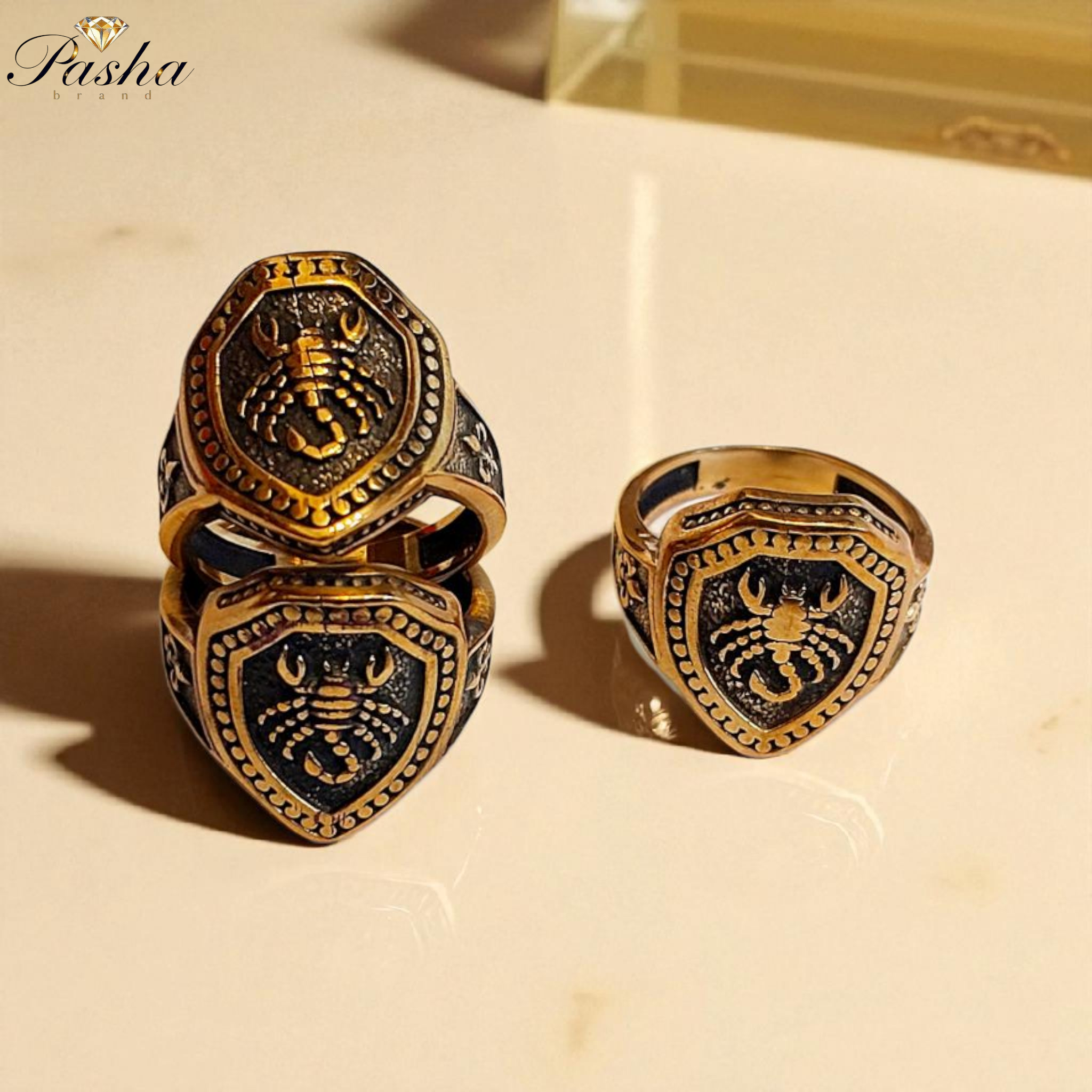 انگشتر مردانه طرح عقرب | استیل طلاروس درجه ۱