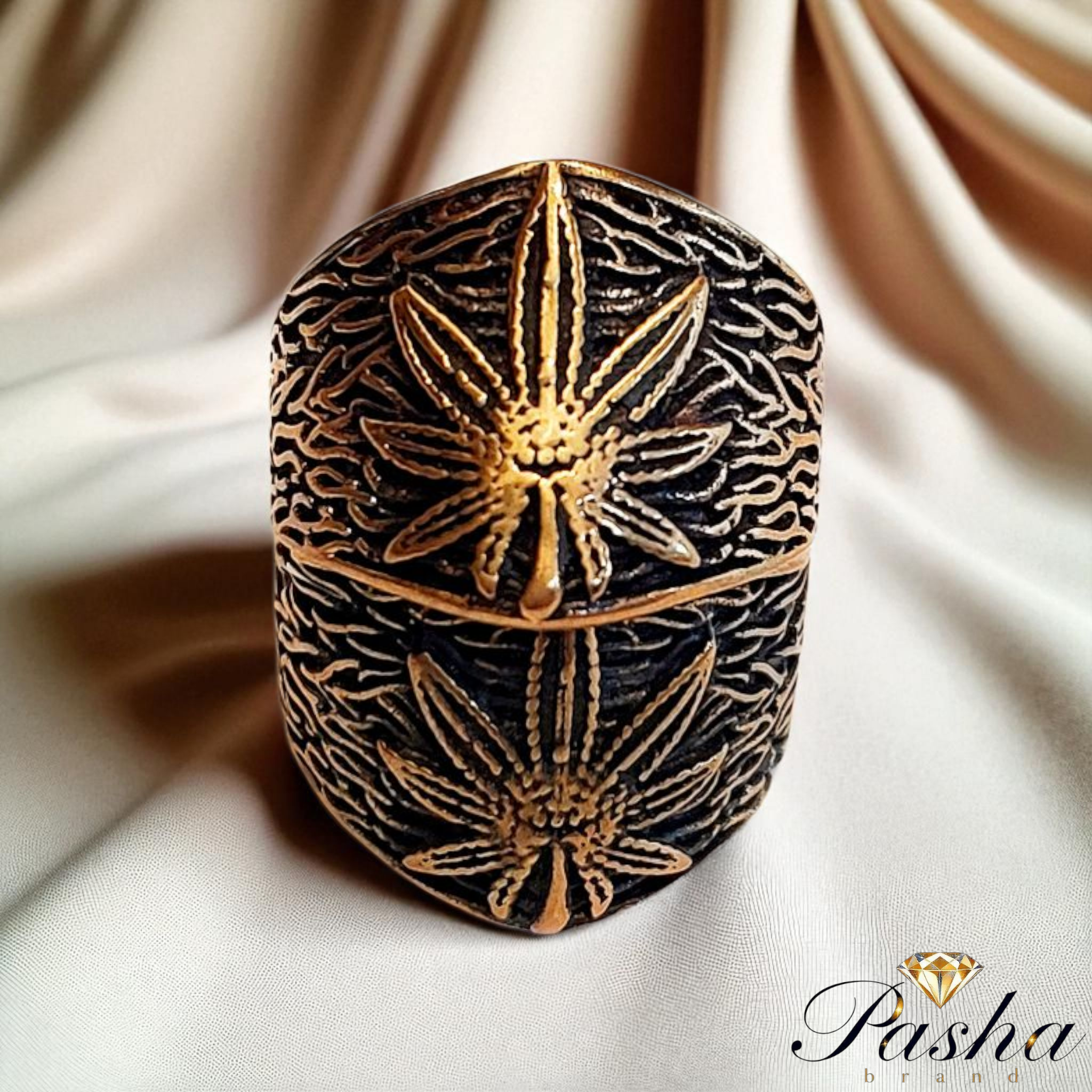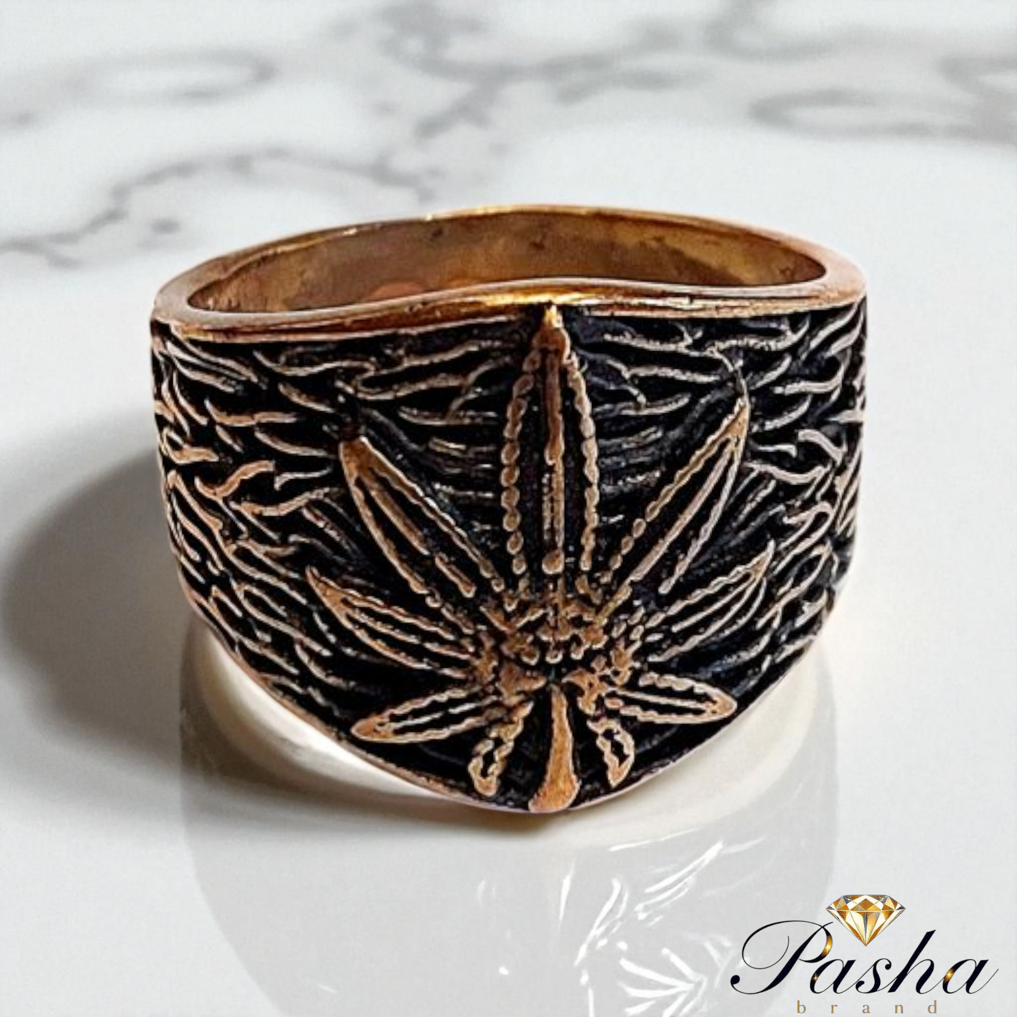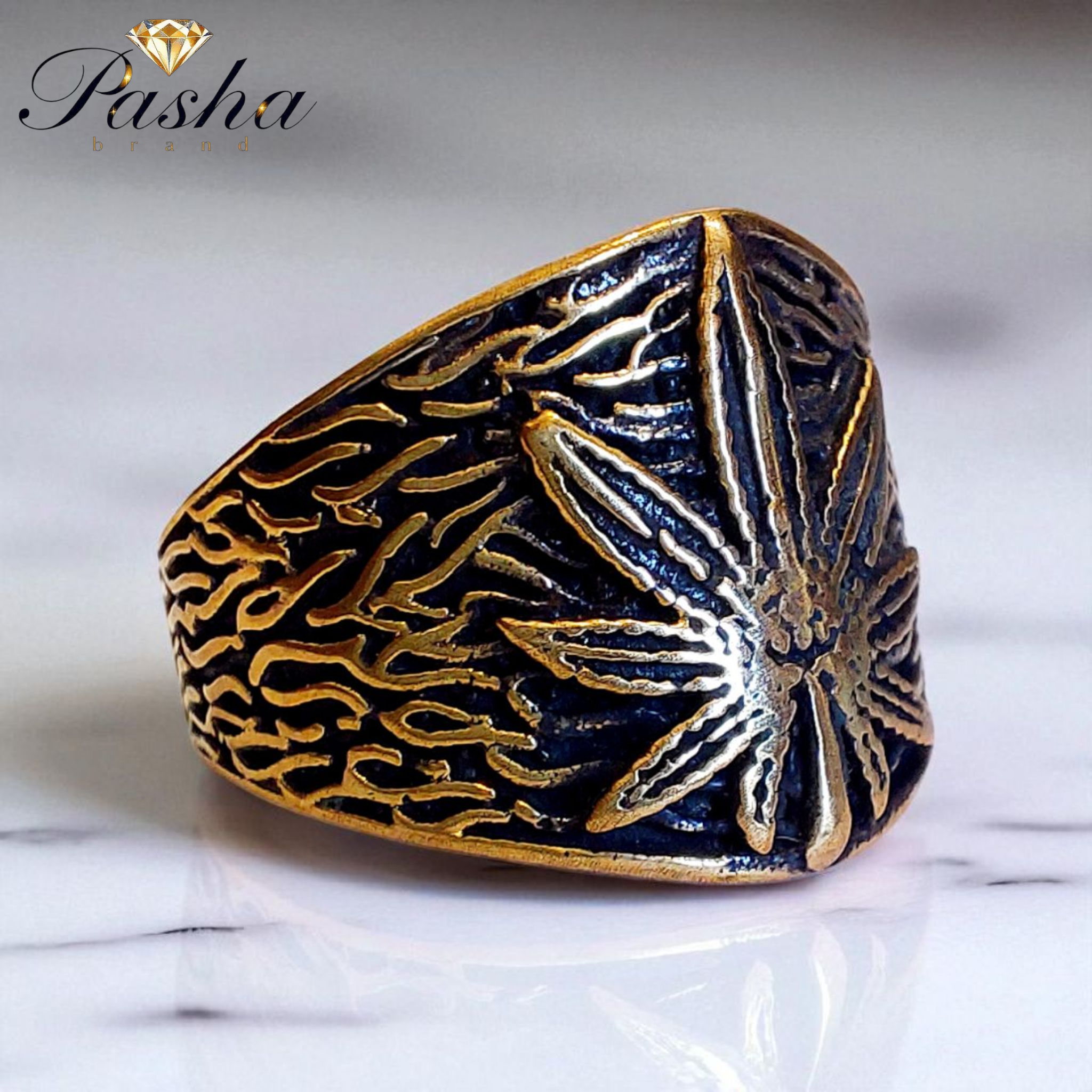 انگشتر مردانه طرح ماریجوانا | استیل طلاروس درجه ۱