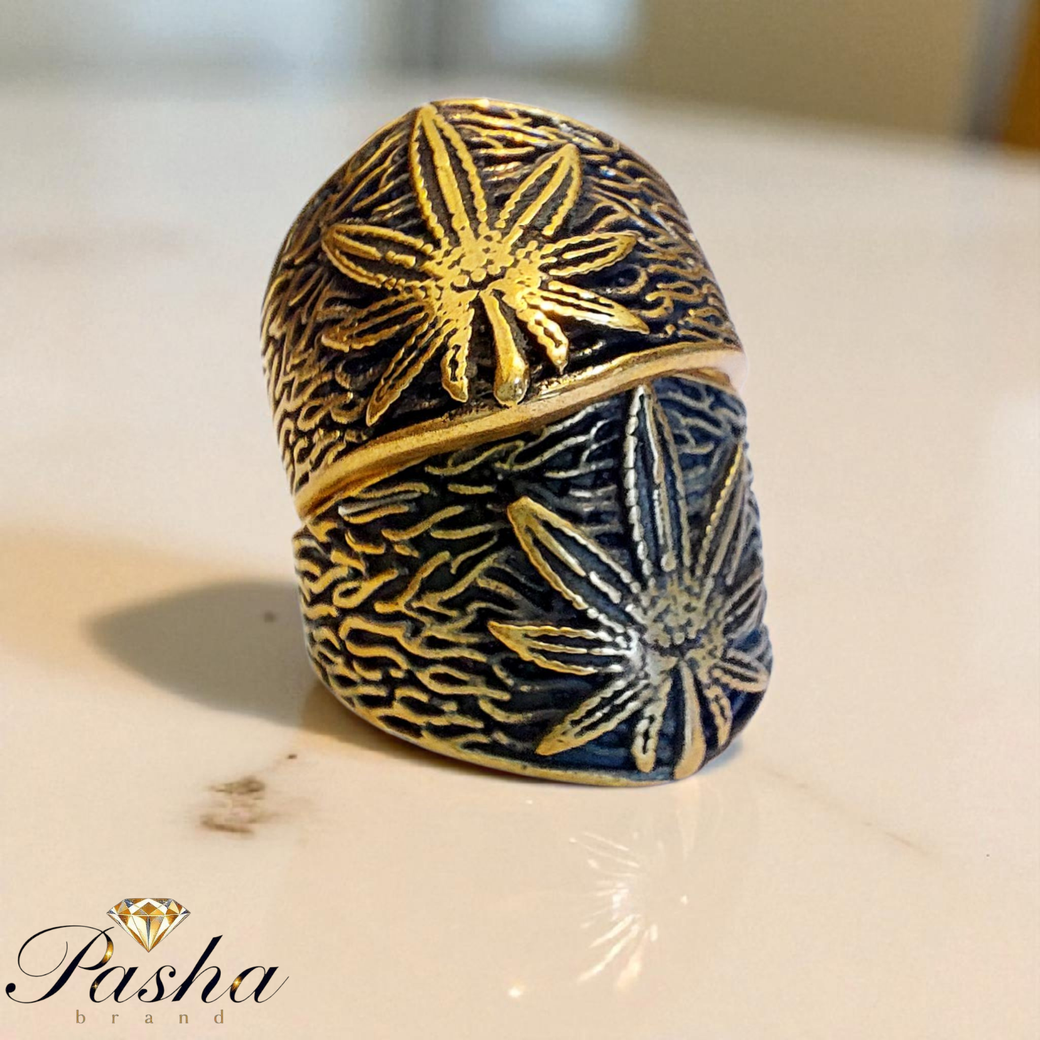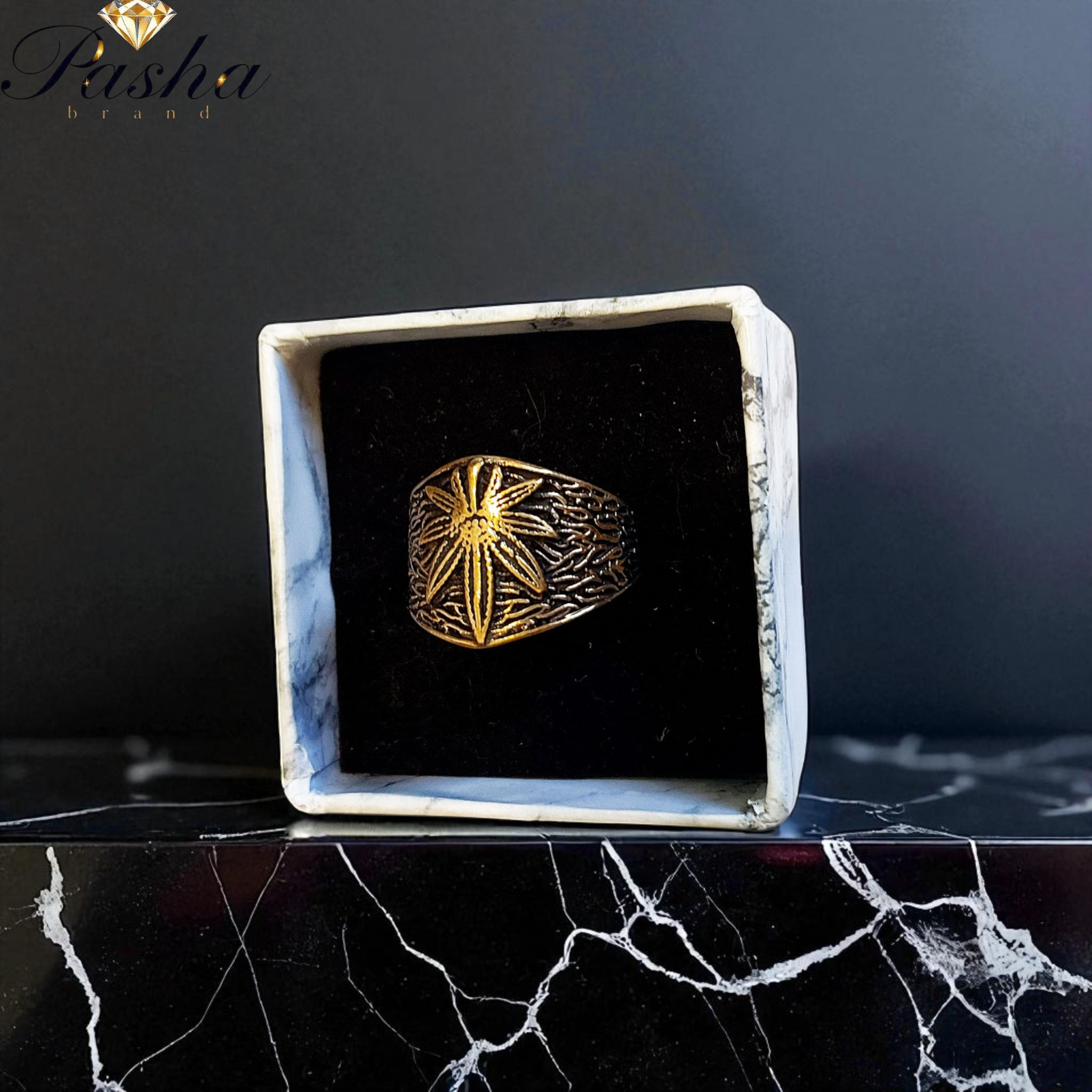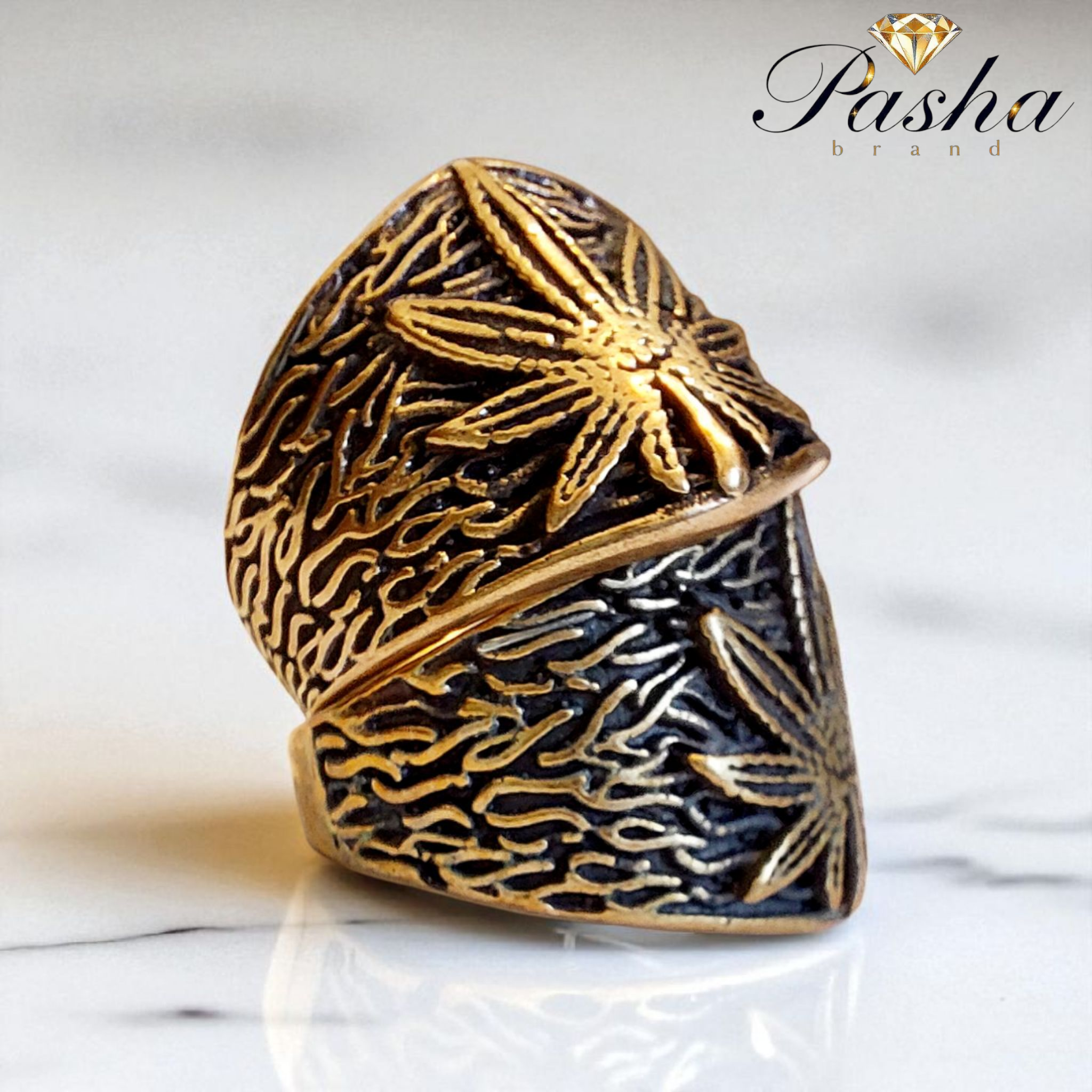 انگشتر مردانه طرح ماریجوانا | استیل طلاروس درجه ۱
