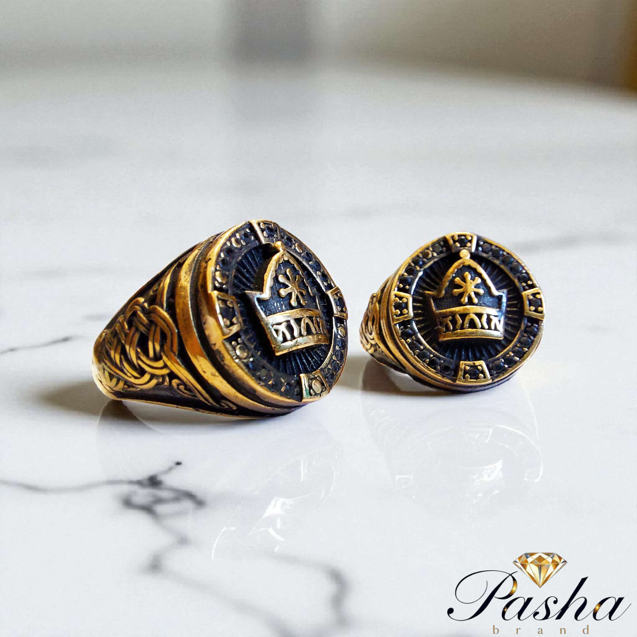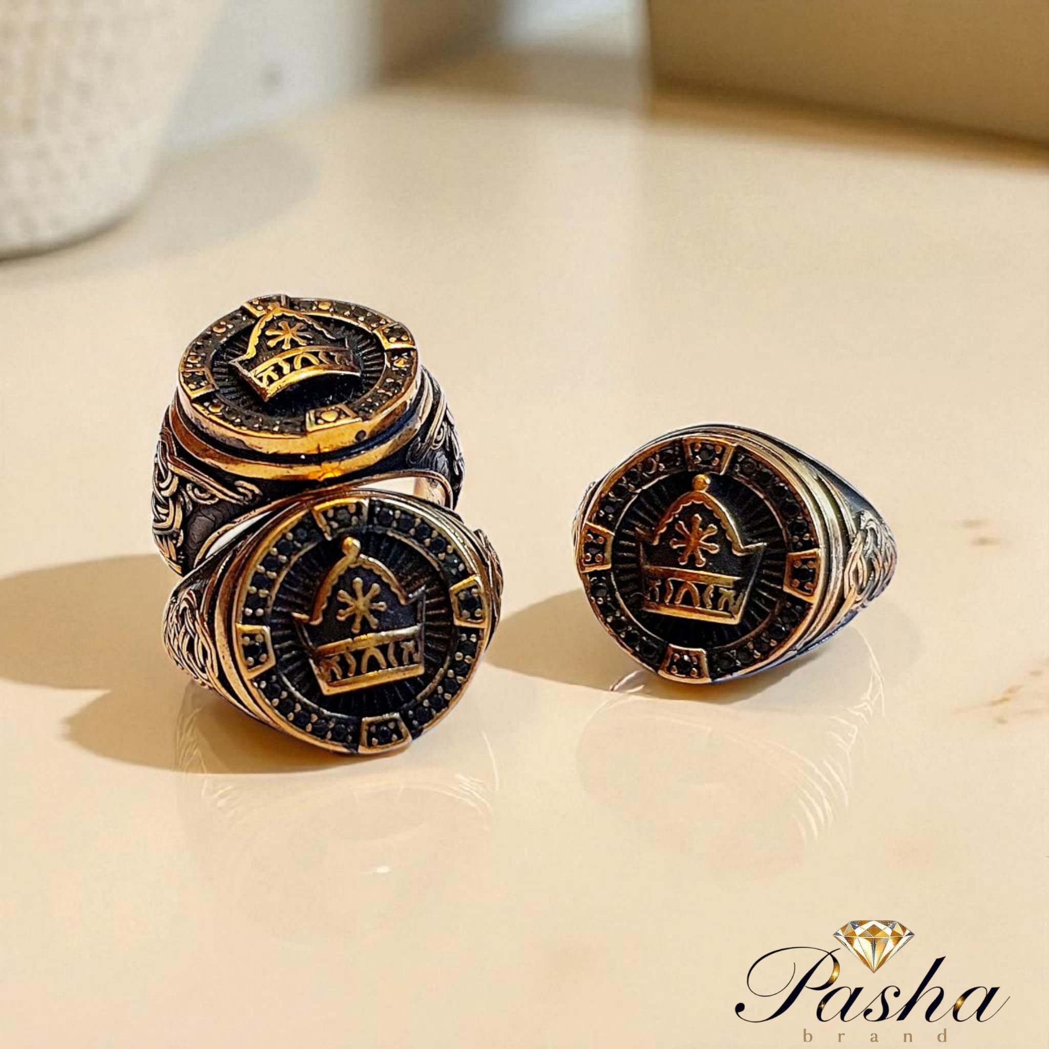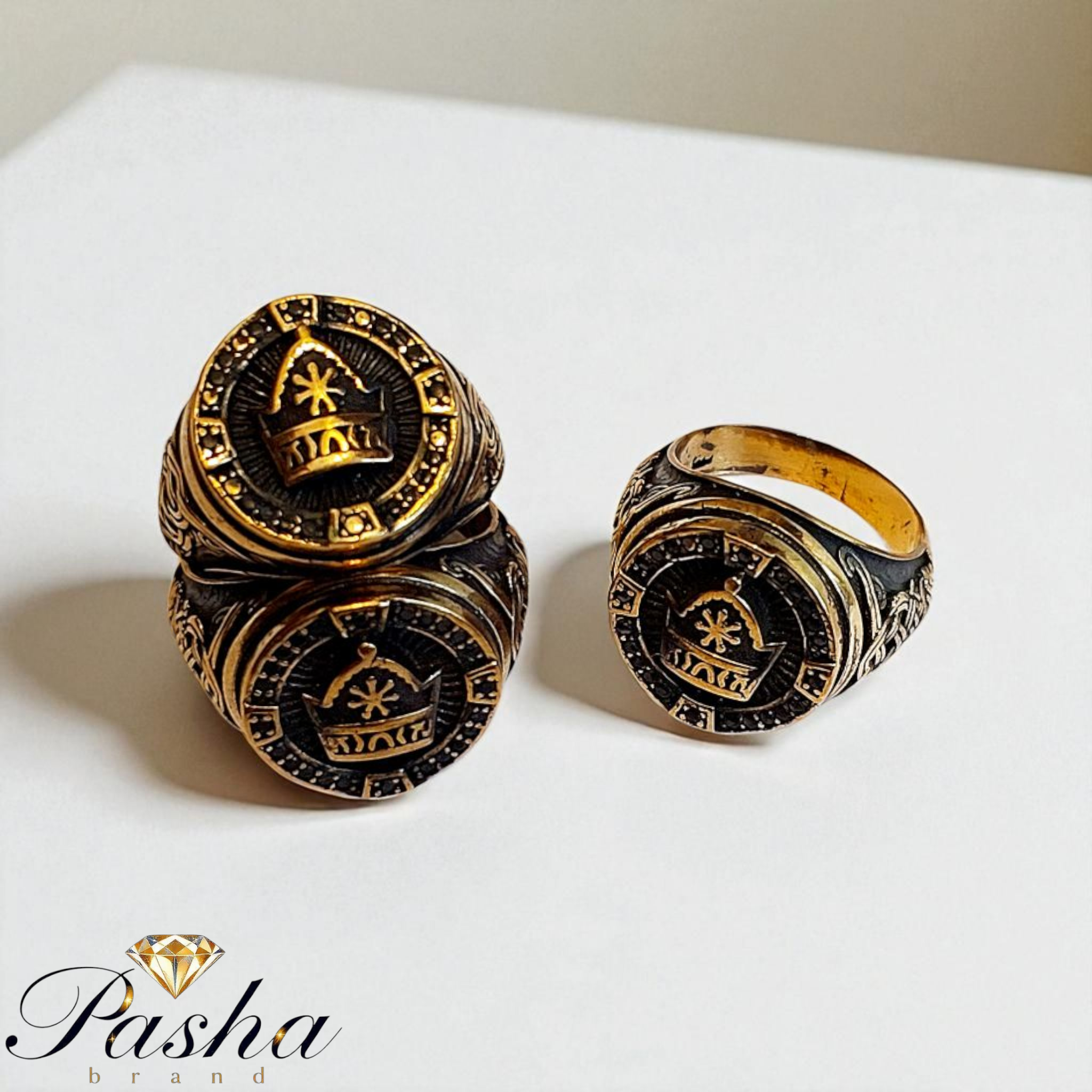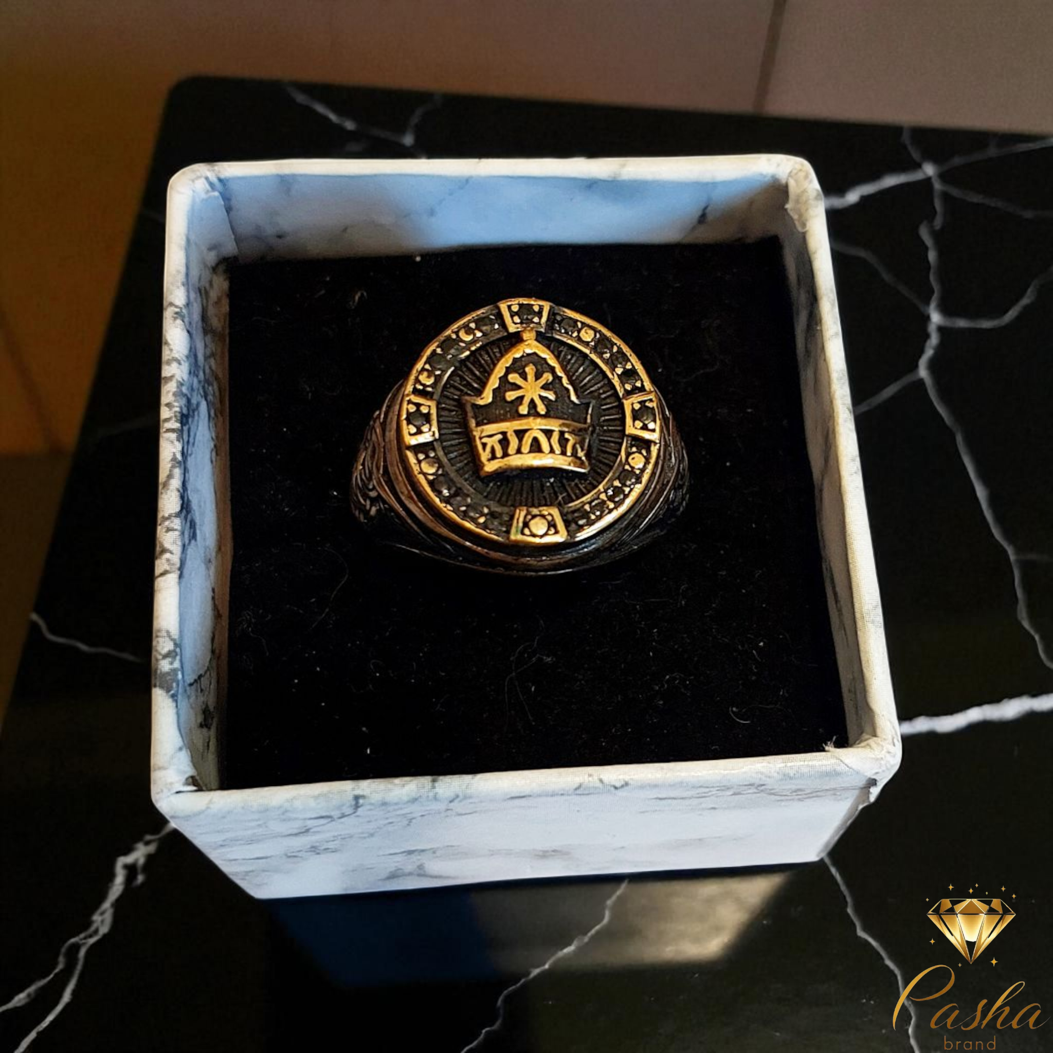 انگشتر مردانه طرح تاج شاهنشاهی | استیل طلاروس درجه