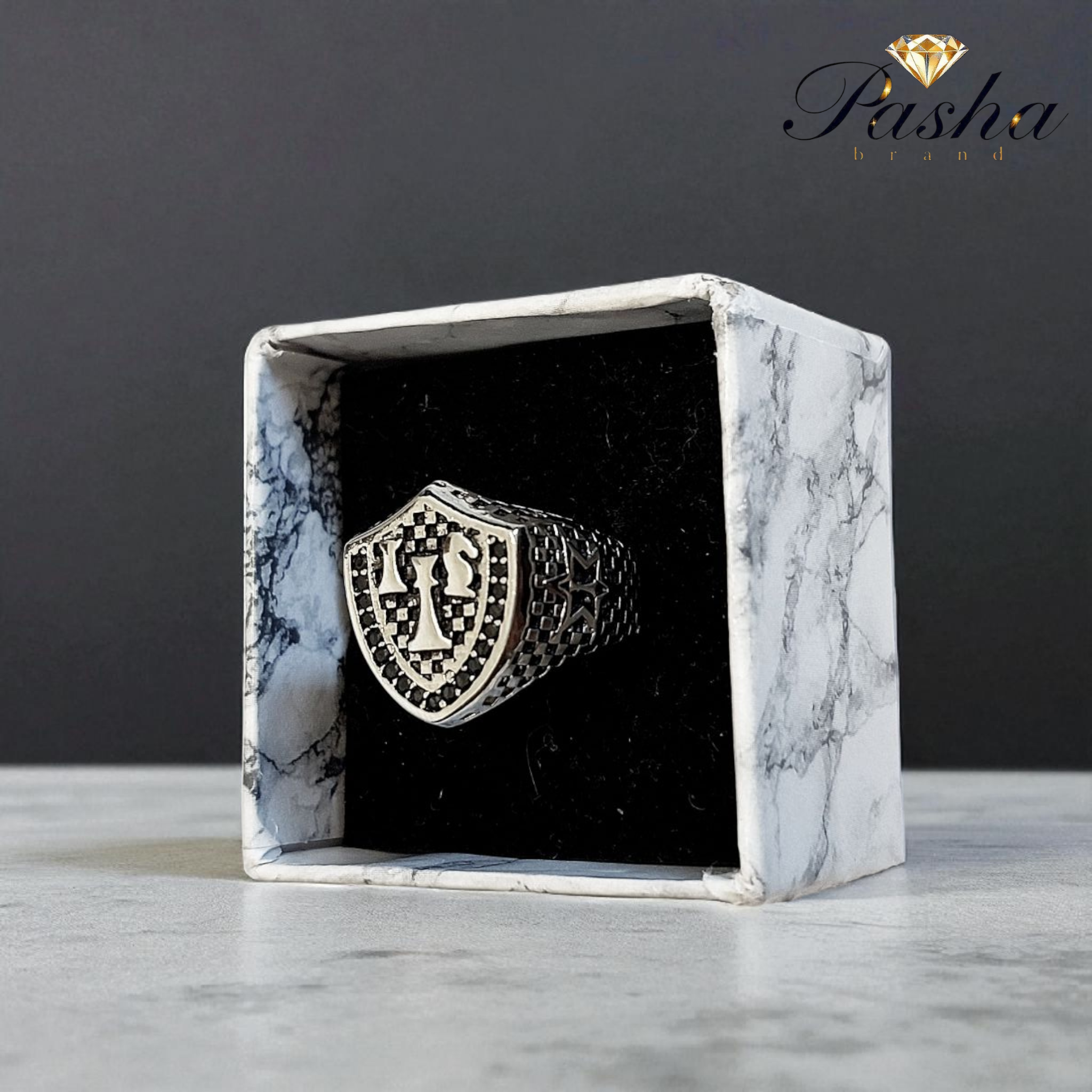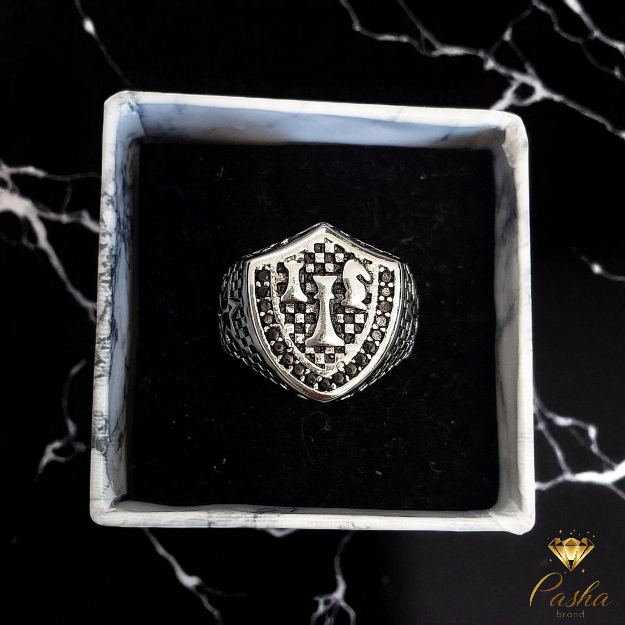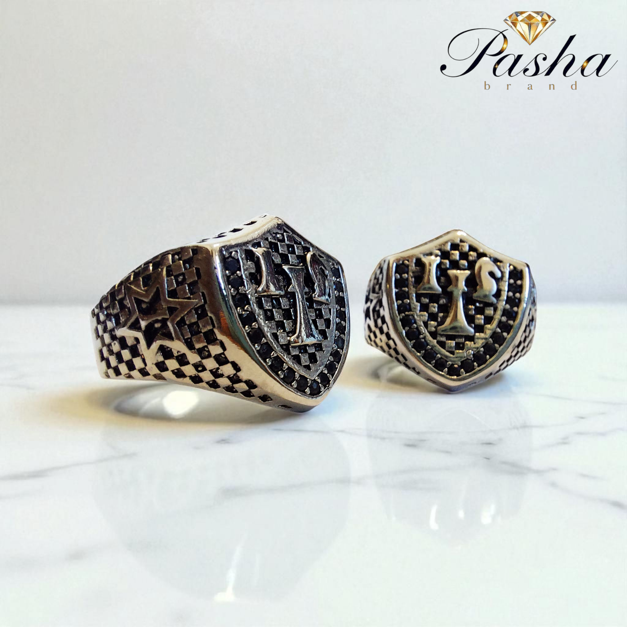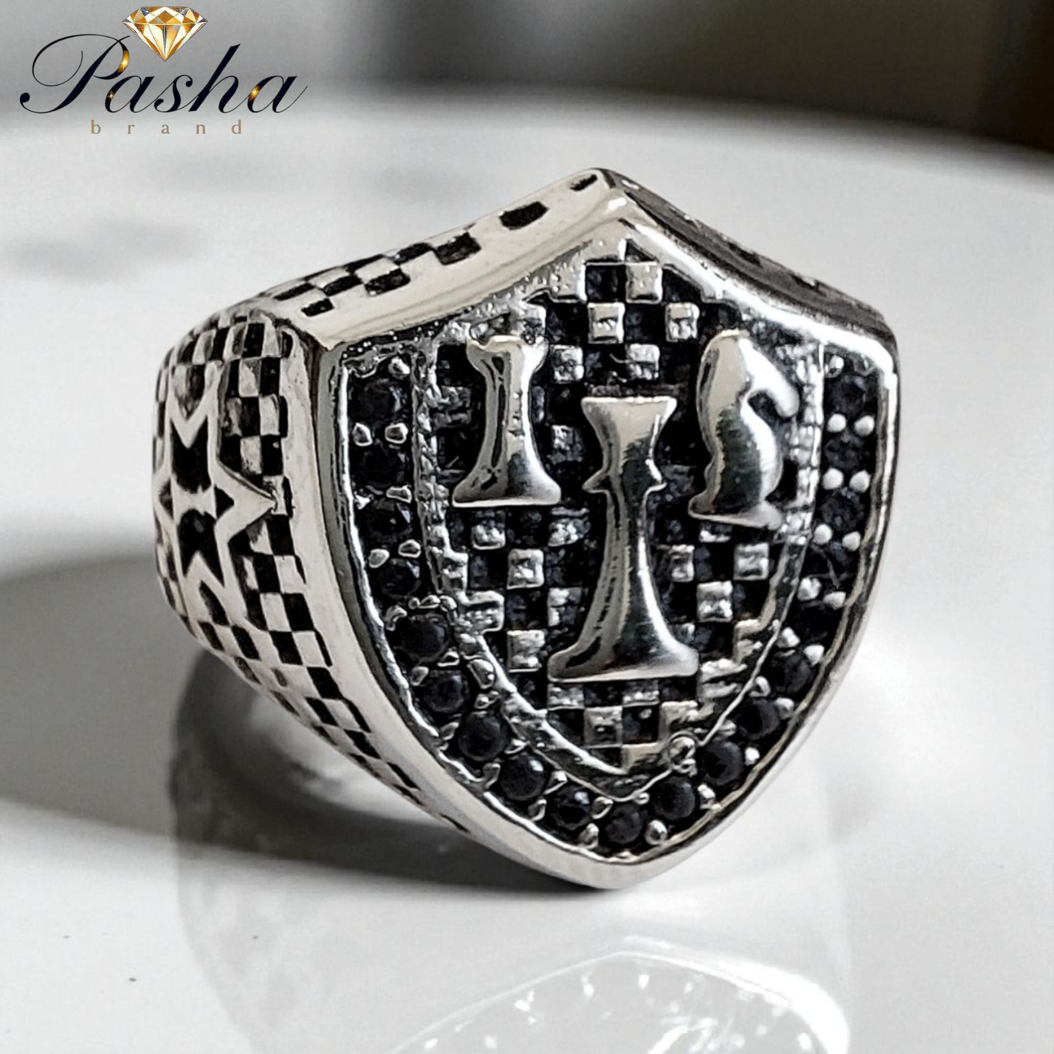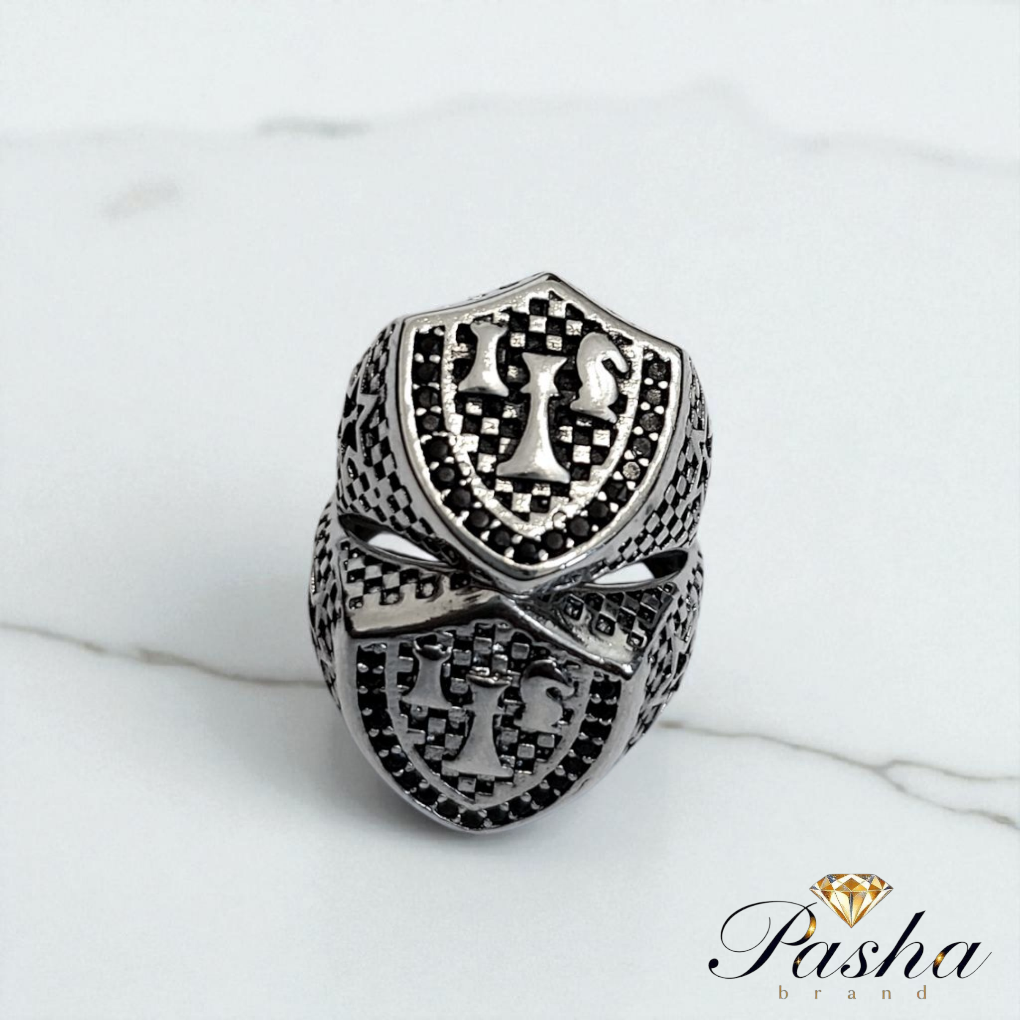 انگشتر نقره روس مردانه طرح مهرههای شطرنج