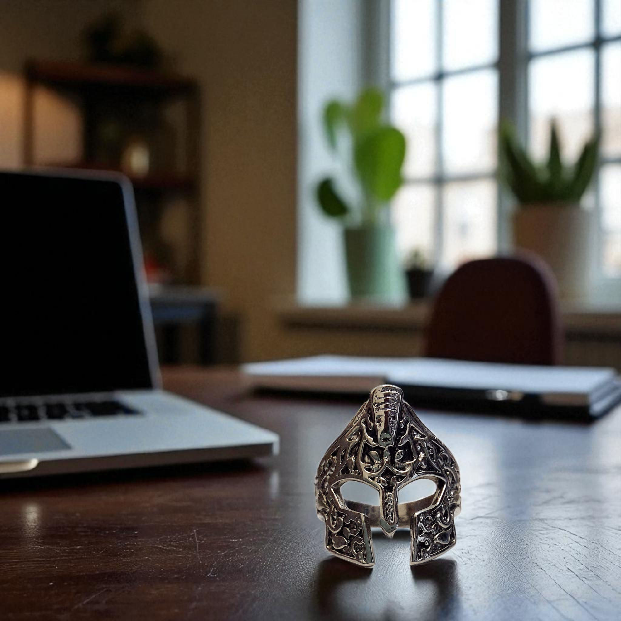 انگشتر نقره روس مردانه طرح کلاهخود رومی (انگشتر گلادیاتور)